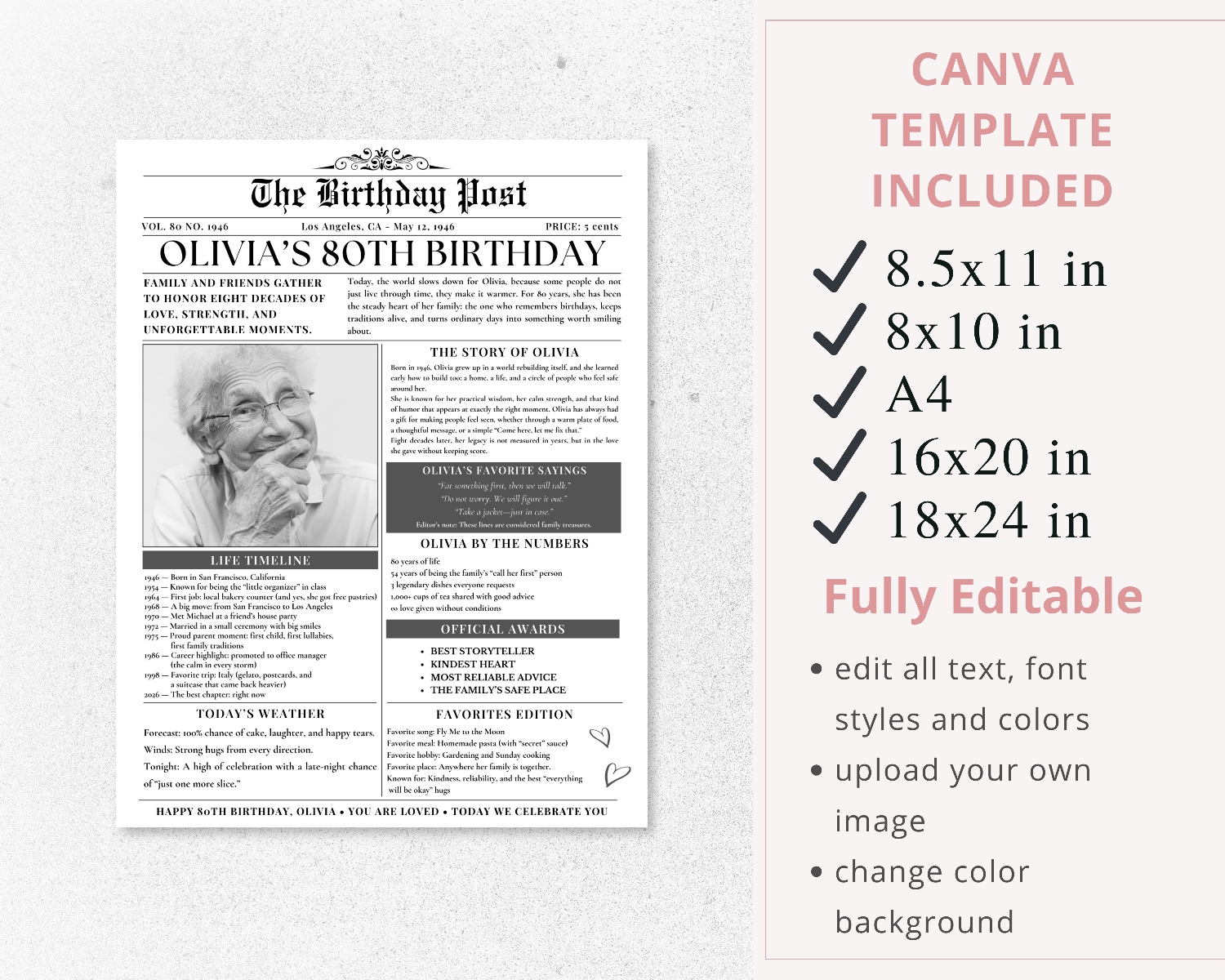 - Birthday Newspaper Canva Template – 8.5×11 in