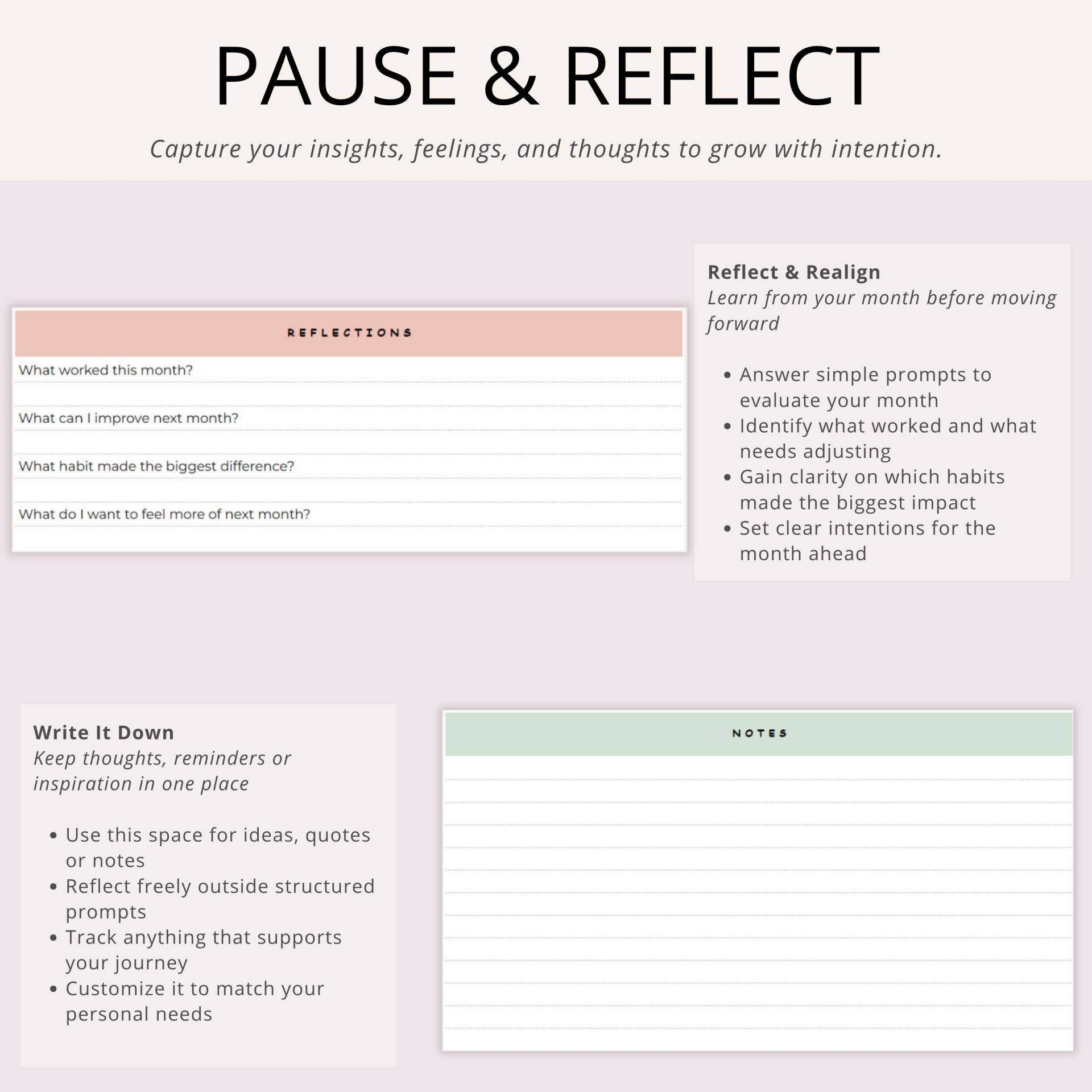 - Reflection & Notes Sections – Gain insight and set intentions each month