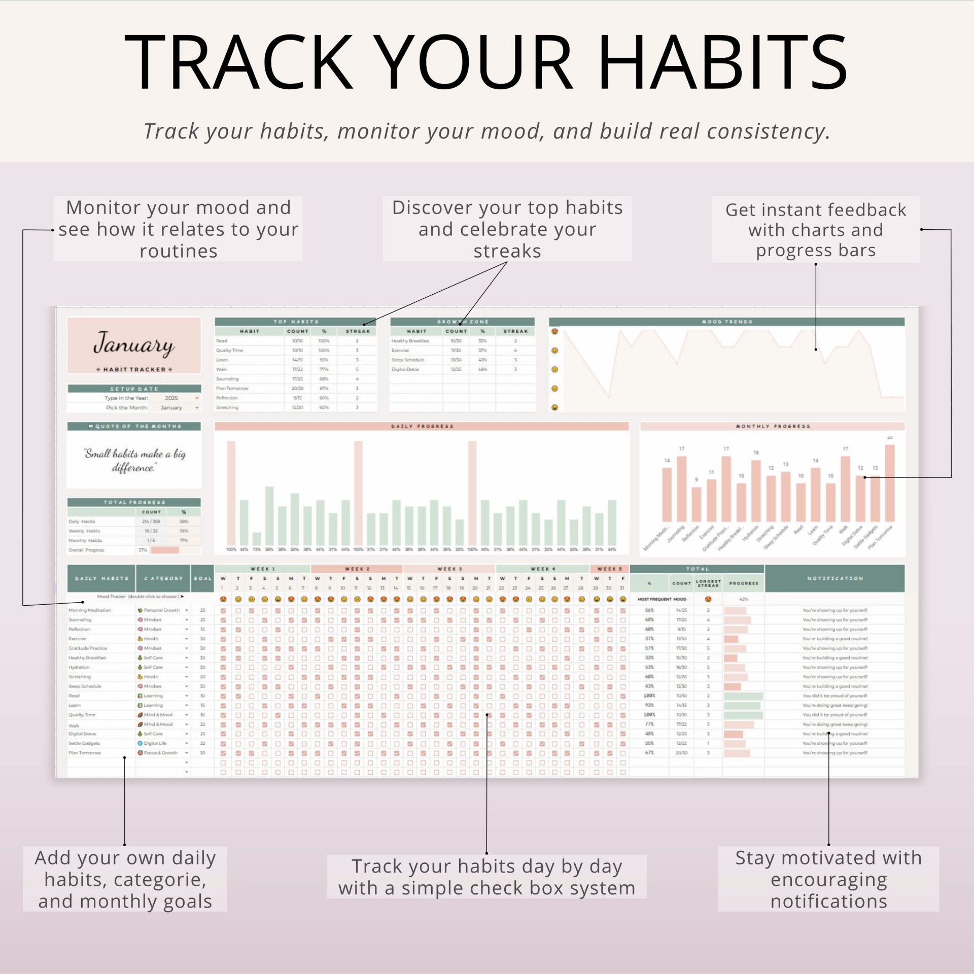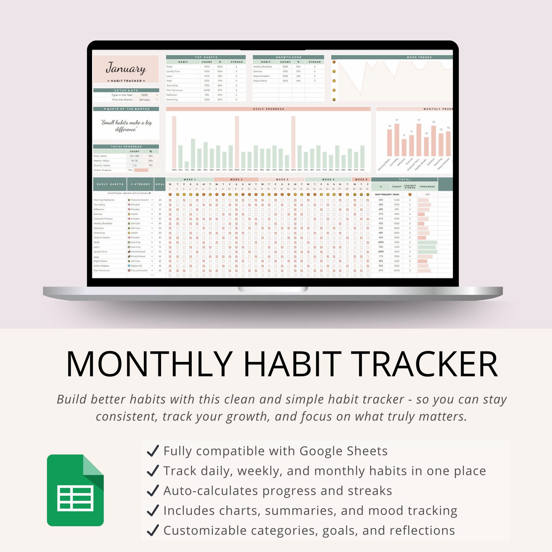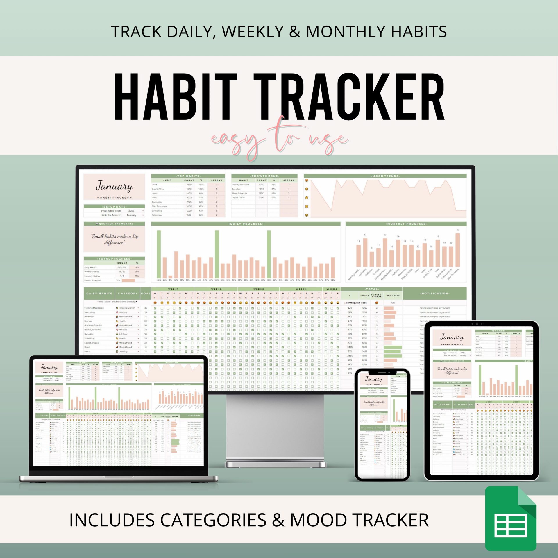 - Habit Tracker for Google Sheets to build routines, stay focused, and reach your goals