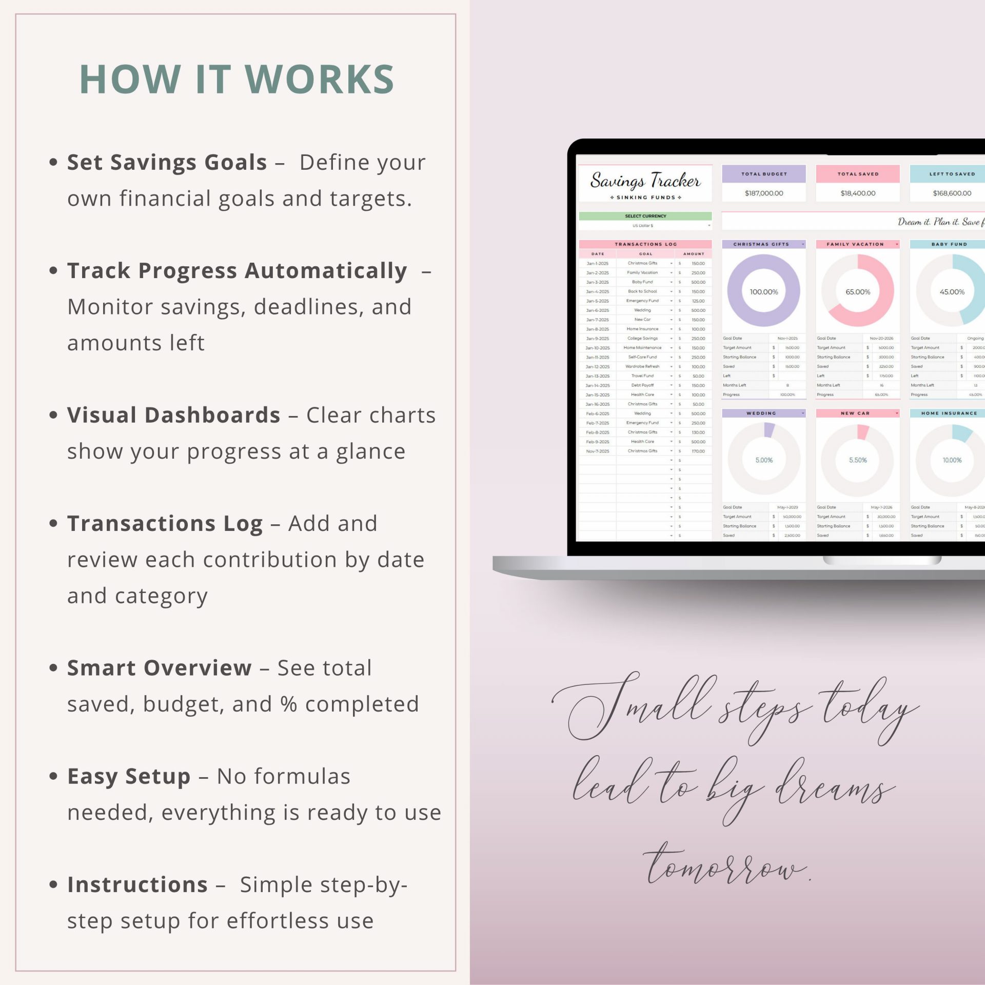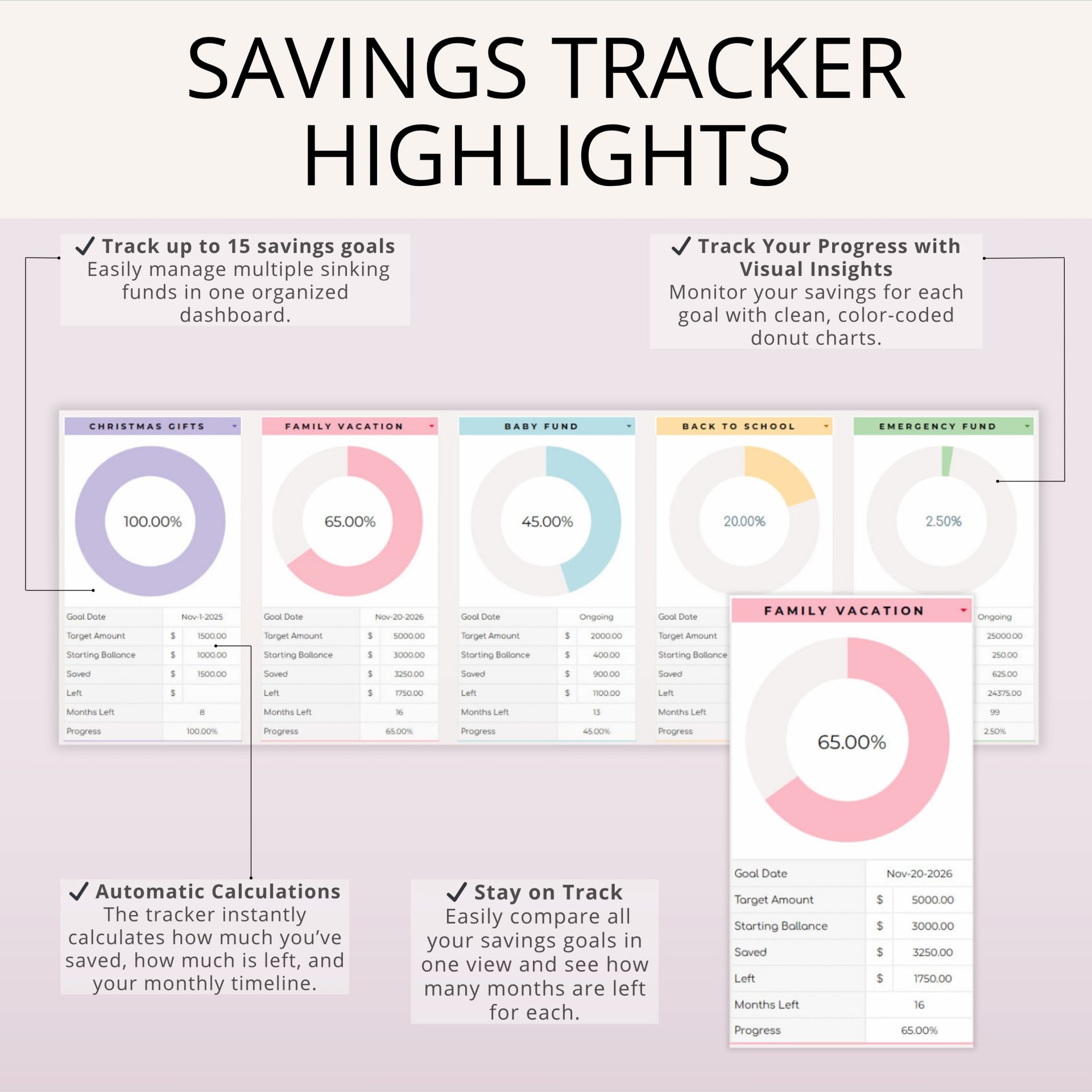 - Progress Bars & Charts – See what’s saved and what’s left at a glance