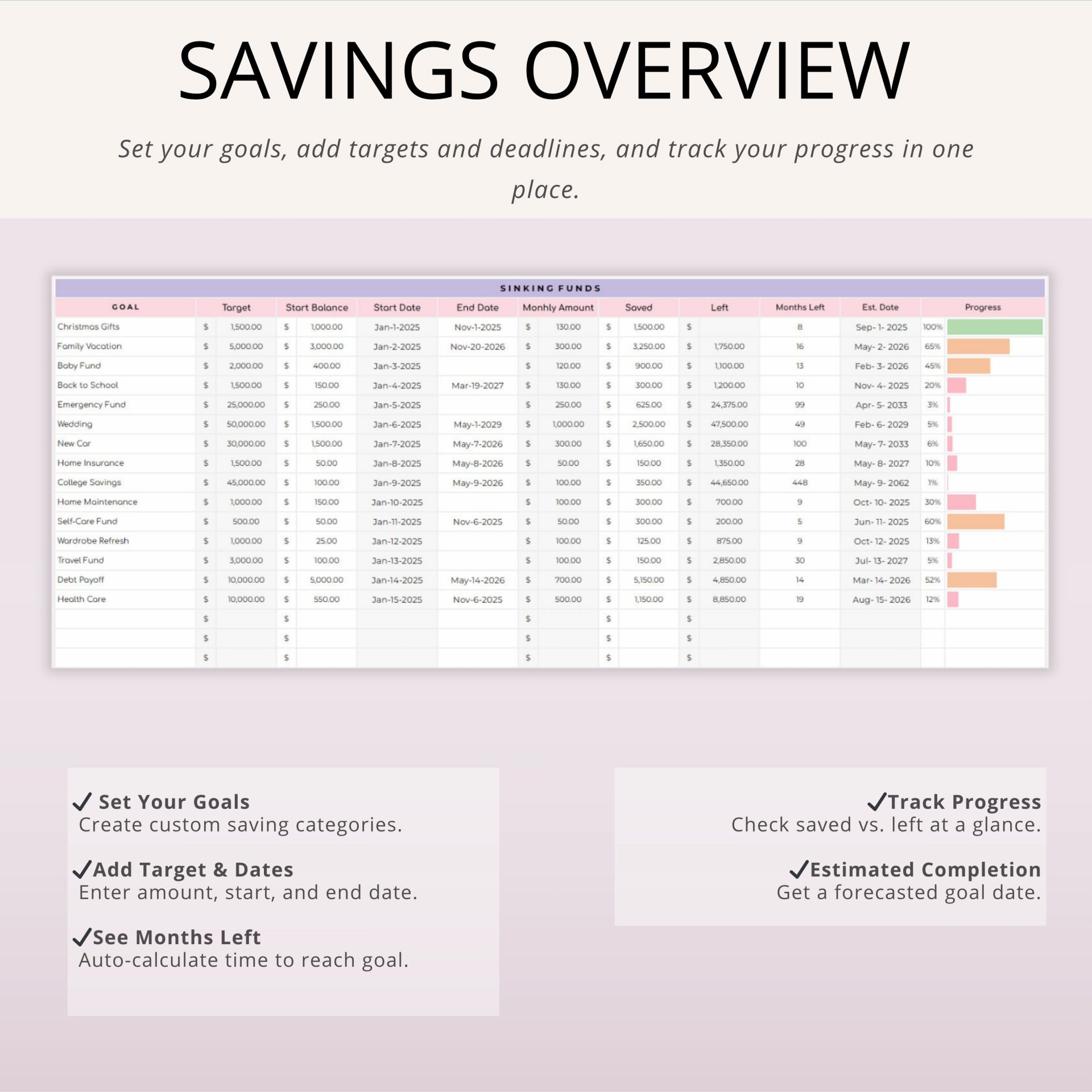 Sinking Funds & Savings Tracker for Google Sheets